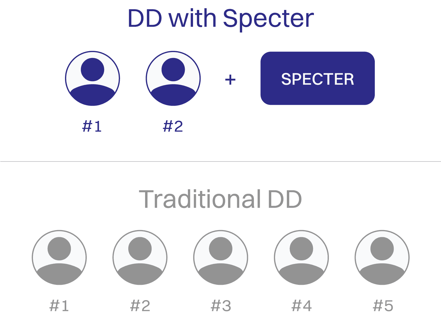 Specter powers Human + AI workflows for M&A teams. It handles the grind - data processing, press search, expert interviews, iterative analyses, citation… - while you provide direction and make key decisions.